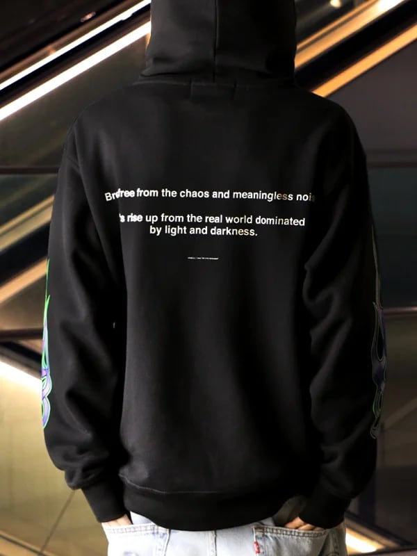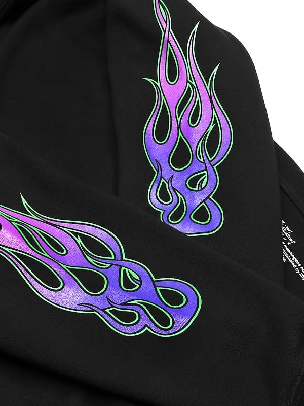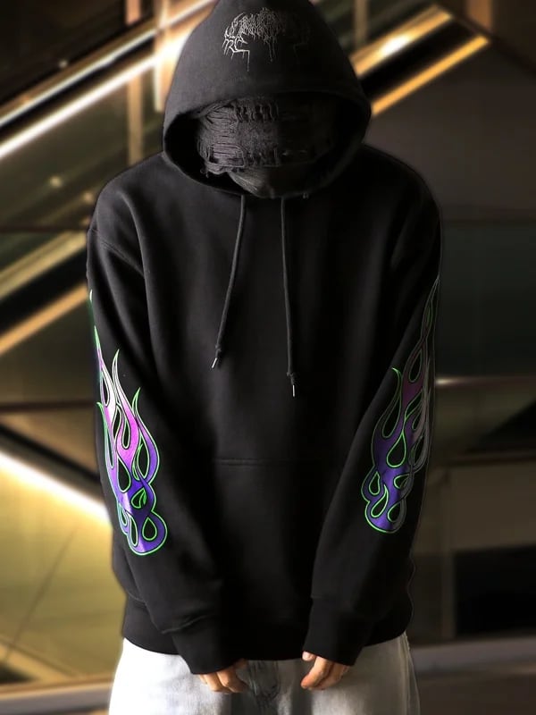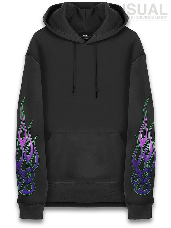 【UNUSUAL】FLAMES BLAZED UP SWEAT HOODIE - BLACK