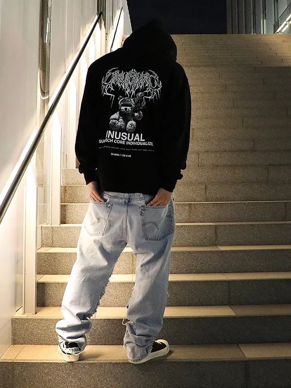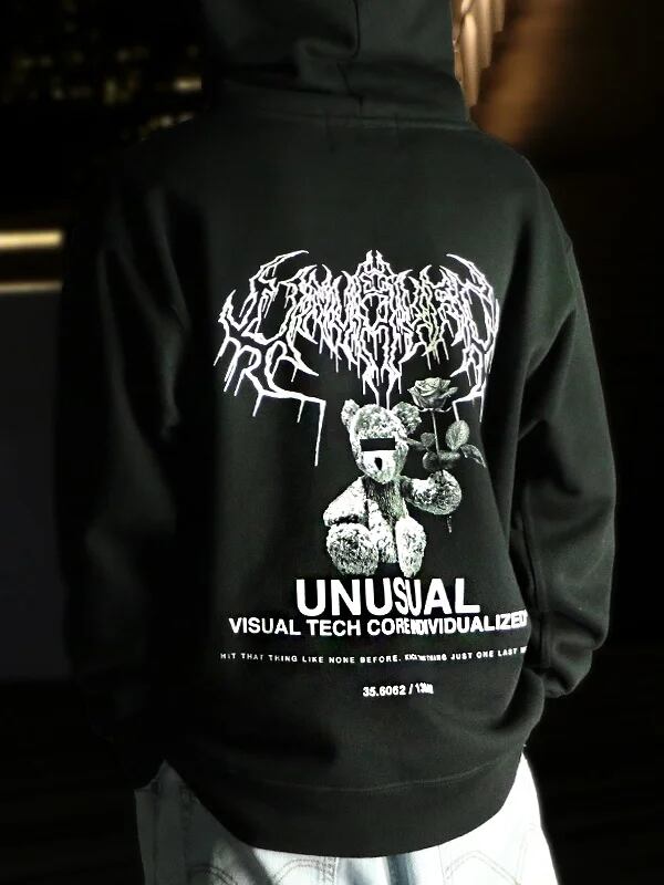 【UNUSUAL】DEAD BEAR SWEAT HOODIE - BLACK